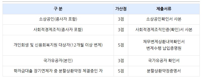 셋째: 다음의 경우 1개 항목만 인정하여 가산점을 부여합니다.